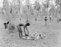 もうそれまでにマレーシアやインドなどで大きな利益を上げていたイギリスなどとことなり、新興のドイツはこれらの新しい植民地で商売を試みました。ニューギニアでは主にコプラ(ココナッツ)を栽培し、それをコプラ油の原料として輸出することでした。