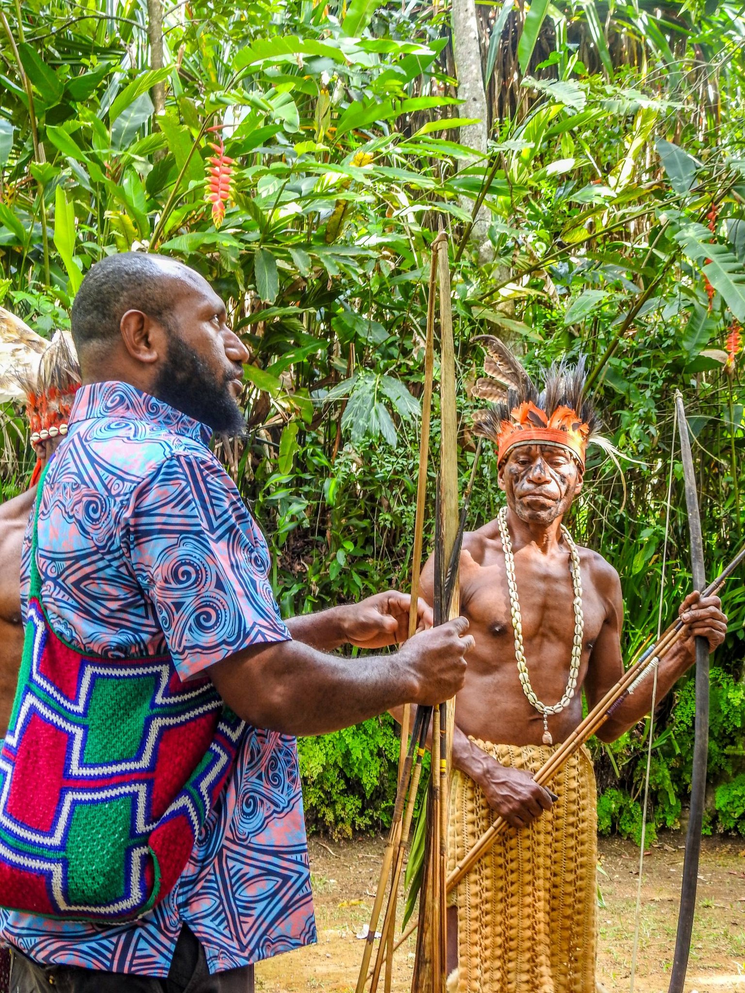 弓矢など伝統的な兵器の使用法を学んだり、竹で作ったバンブーフルートやフェイスペイントの実演など、盛りだくさんの内容。